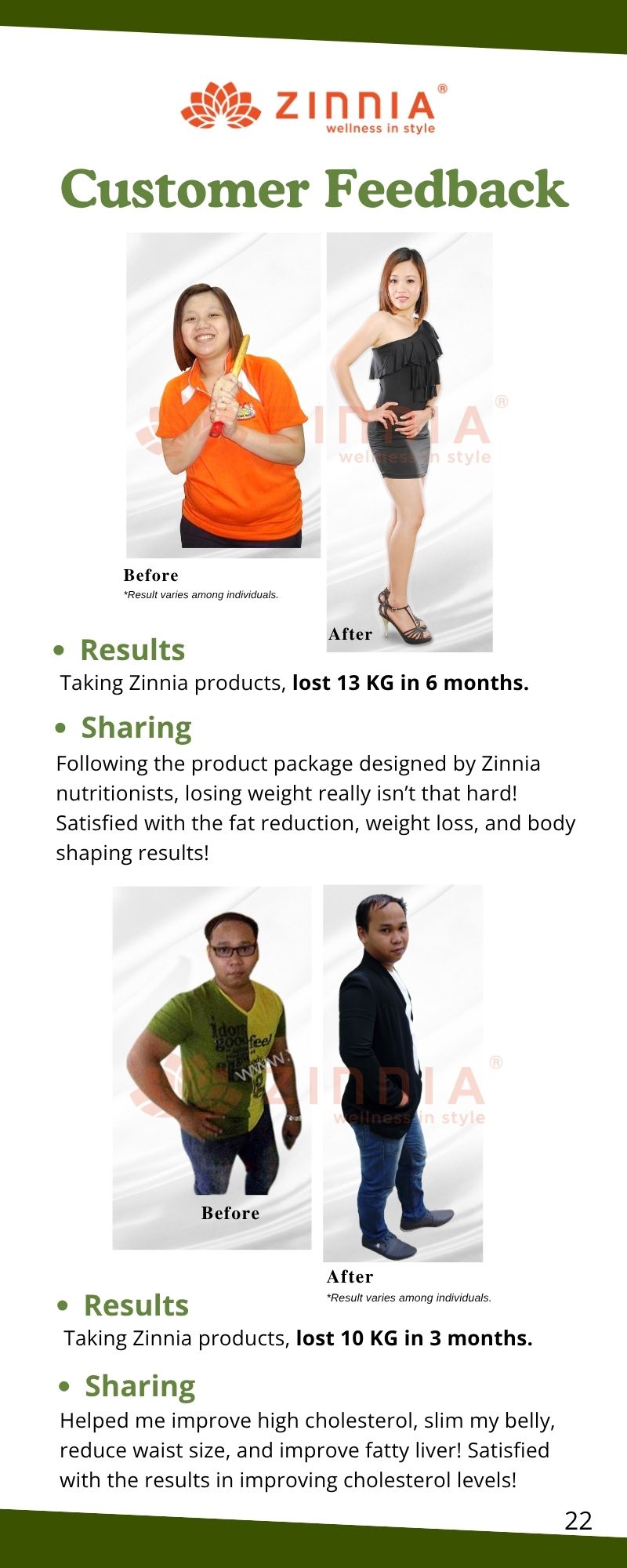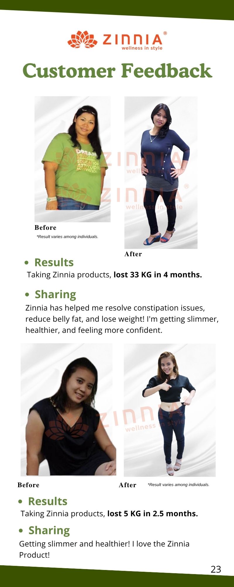 For more noticeable weight loss effects, it's recommended to undergo a 3-month treatment with ZINNIA Products. For individuals classified as obese (BMI index above 28), take 1 sachet of ZINNIA CATOX EZYME in the morning and evening.