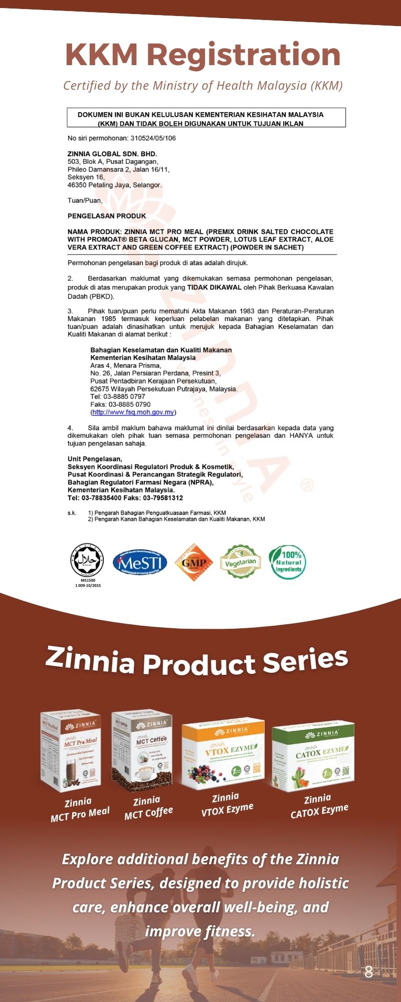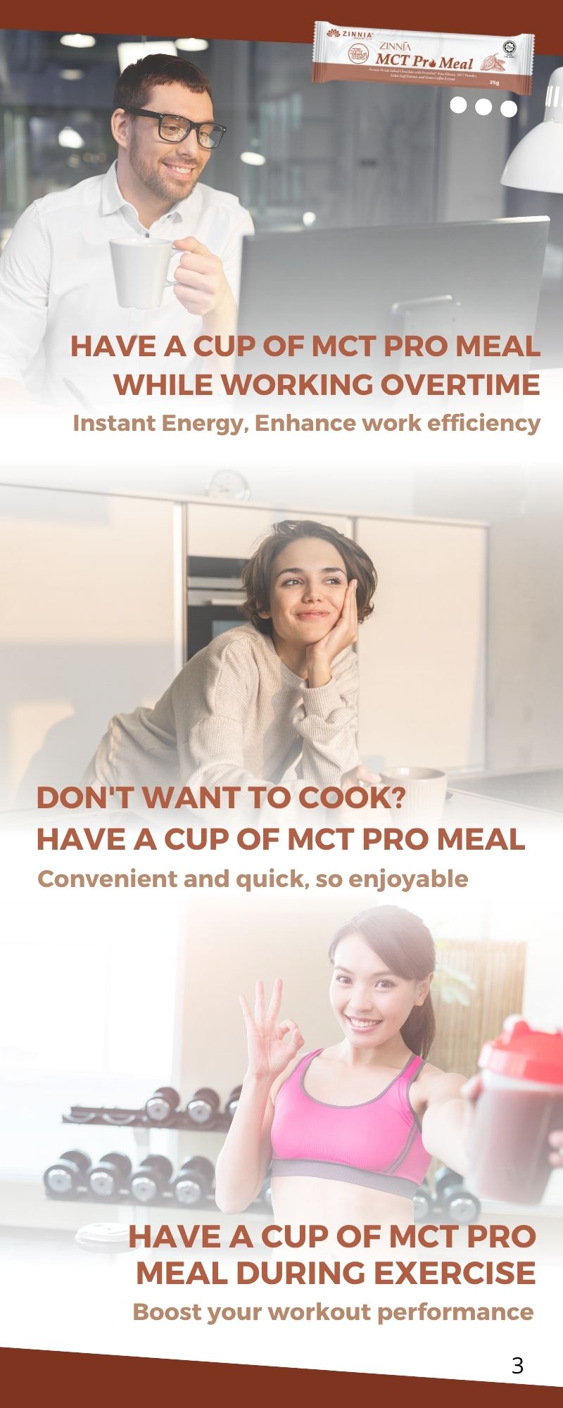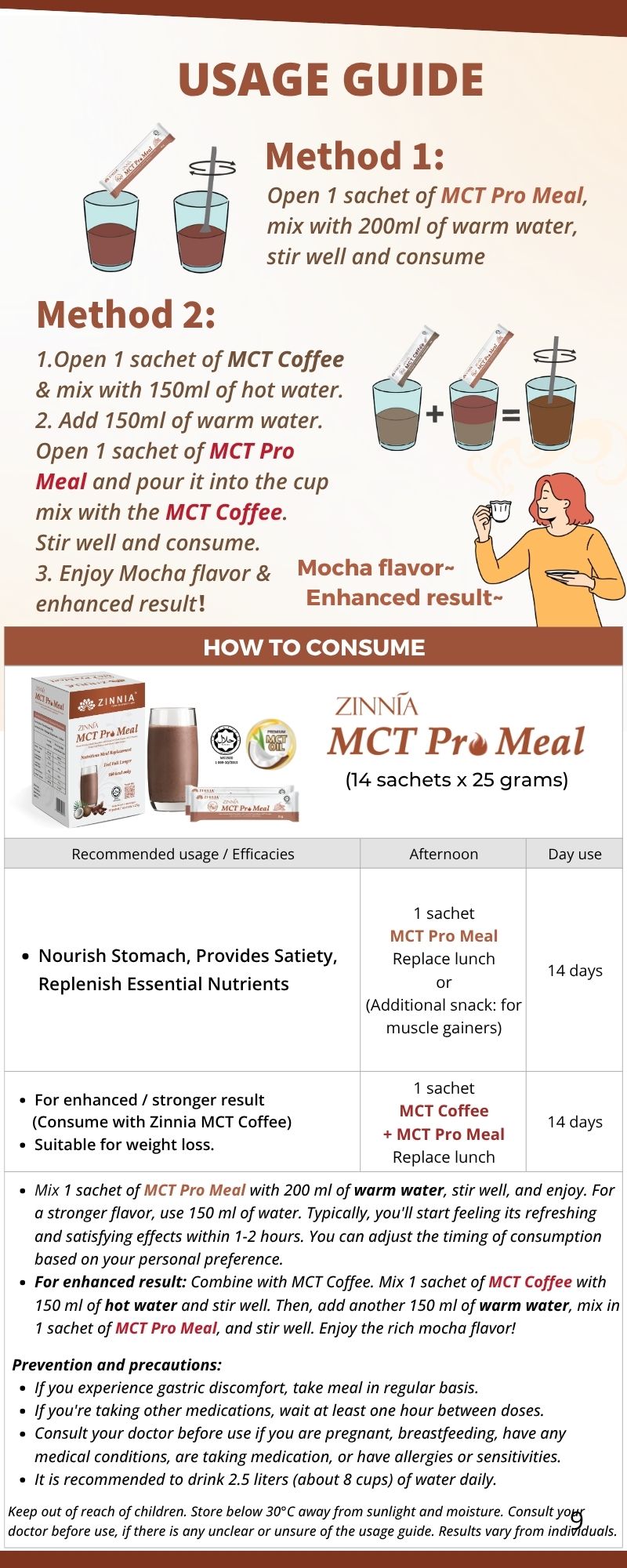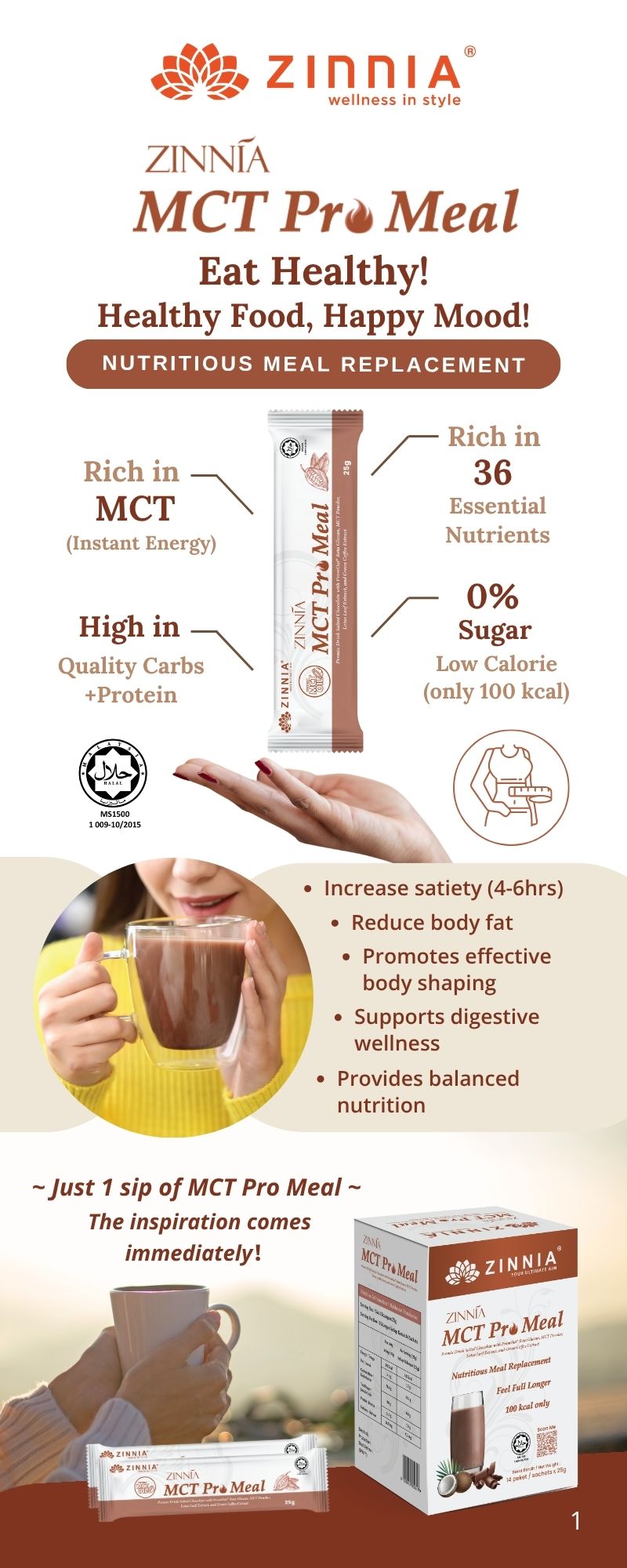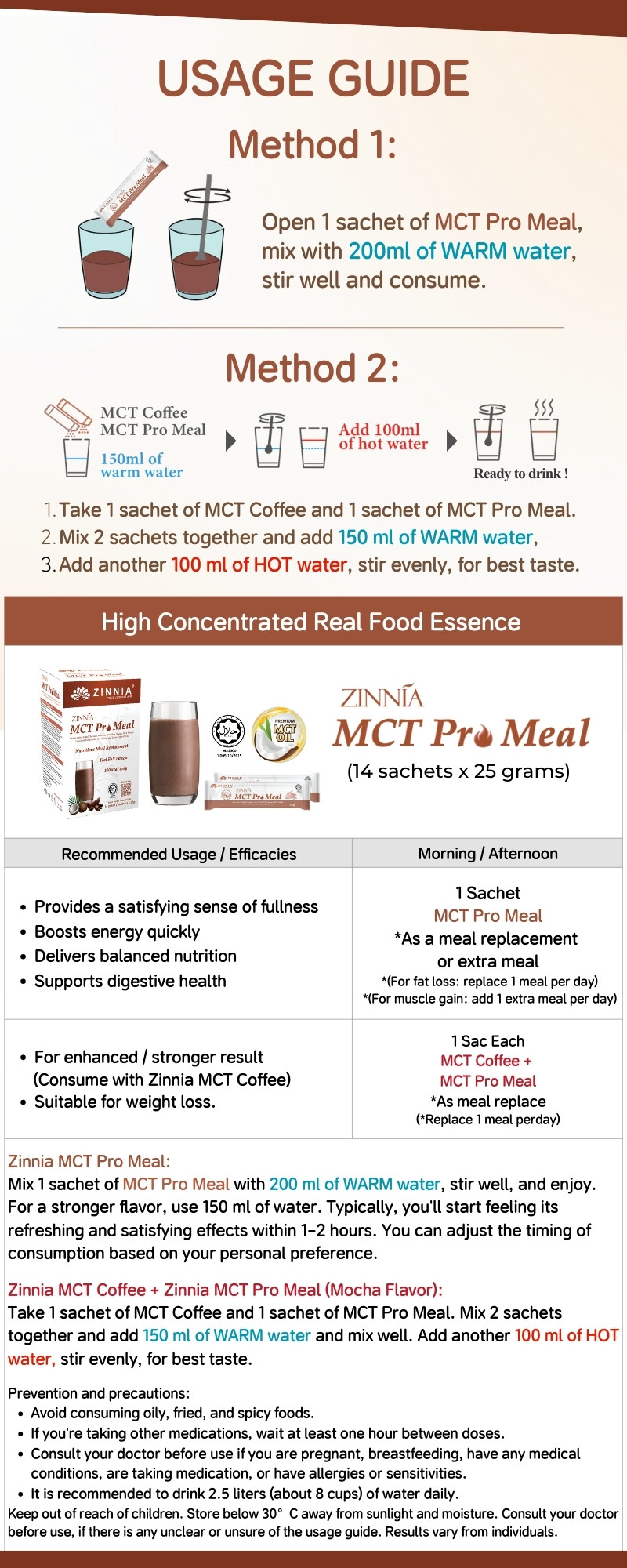ZINNIA MCT Pro Meal is in powder form and can be stored in a cool, dry place, making it easy to carry and preserve.