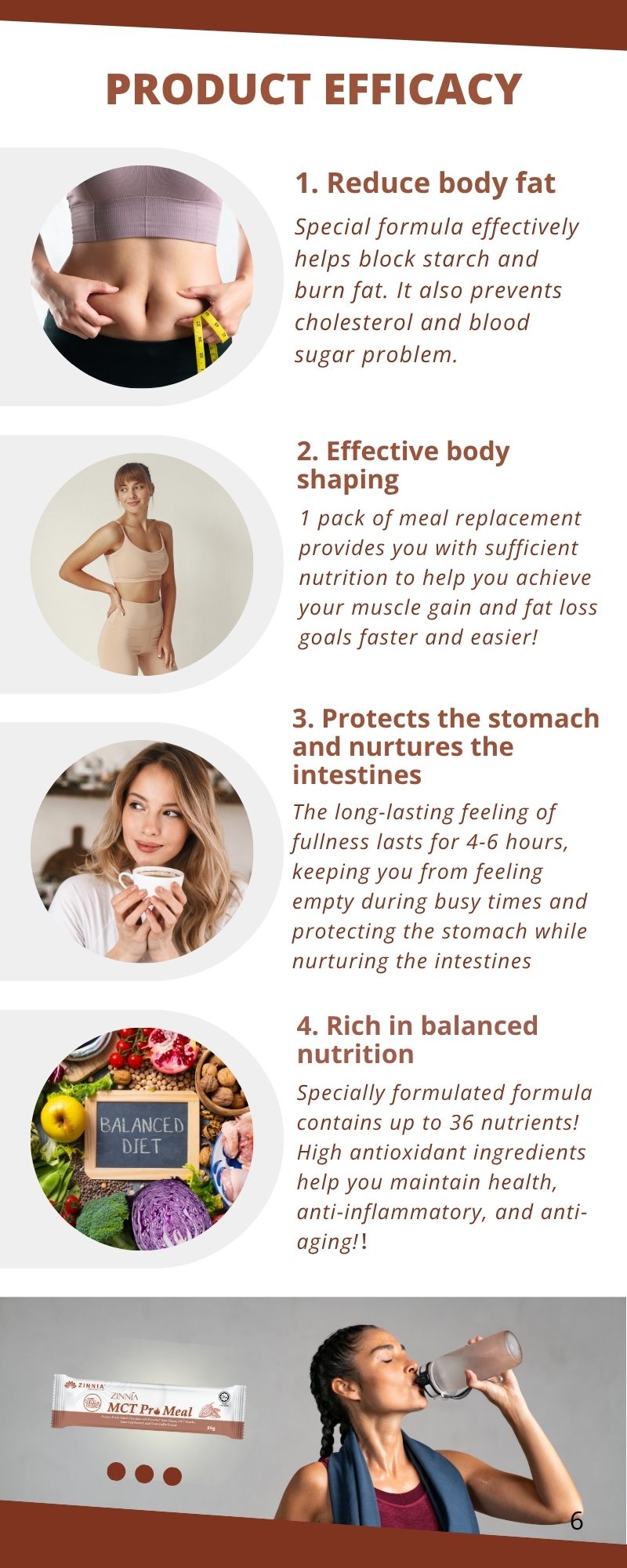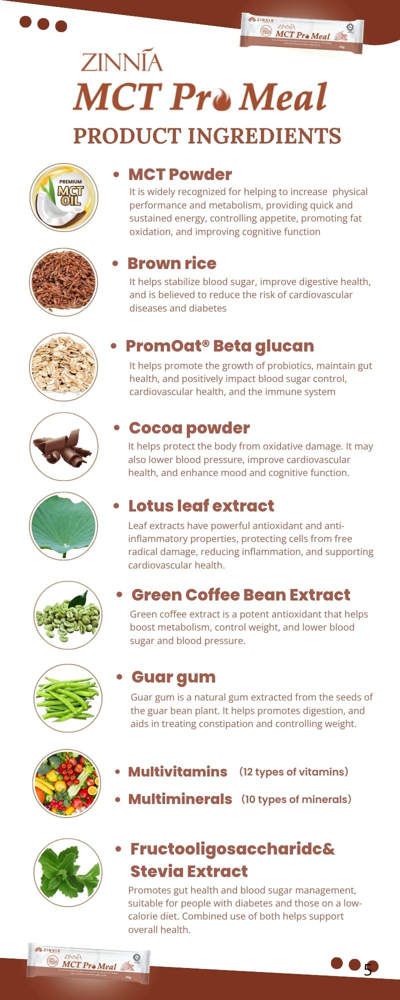 ZINNIA MCT Pro Meal is low in calories, sugar-free, and rich in dietary fiber and protein, which increases satiety and reduces food intake. The MCT oil helps boost metabolism, aiding in fat burning and supporting healthy weight loss.