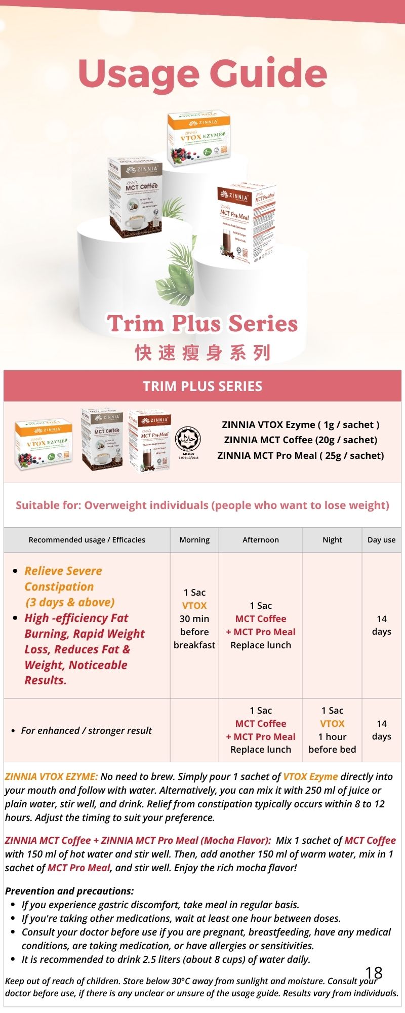 Individuals with obesity, or an acidic body constitution: It is recommended to take it with ZINNIA MCT Coffee & ZINNIA MCT Pro Meal to achieve the best health effect.
