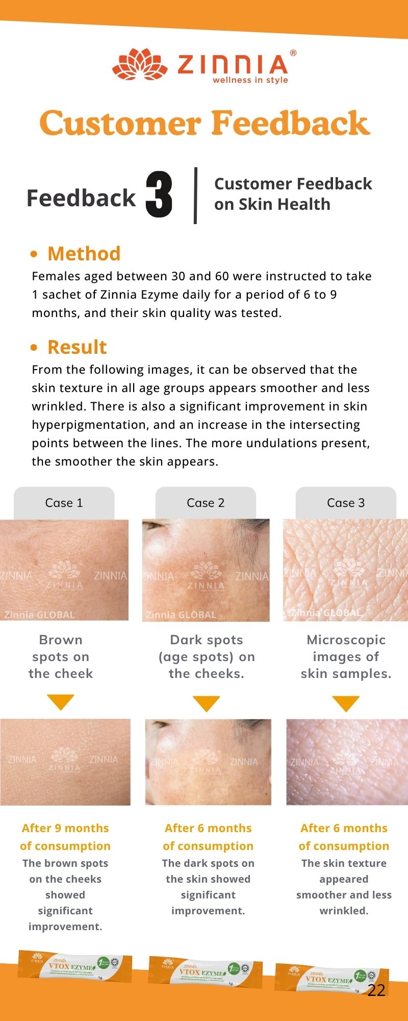 Taking ZINNIA VTOX EZYME helps with slimming and body shaping. Through detoxification and removal of excess moisture, even if your weight doesn’t decrease, your body shape will become lighter and more toned.